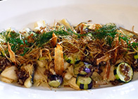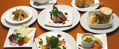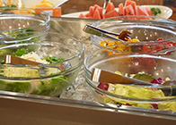 You can taste original dishes cooked with local seasonal ingredients. Dinner is Japanese and Western cuisine buffet featuring a variety of ingredients of Hokkaido. With warm and cozy atmosphere of wood tone, enjoy Hokkaido cuisine.